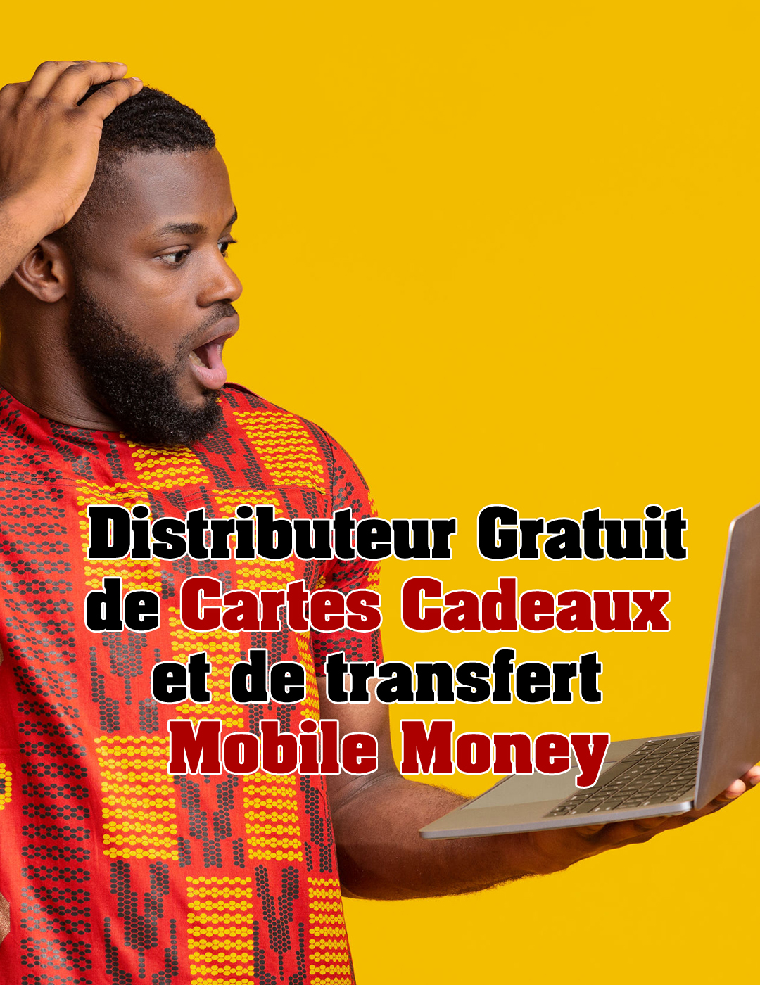 Sur ce site, nous offrons GRATUITEMENT des Cartes Cadeaux ou des tranferts Mobile Money d'une valeur de 30.000 Fcfa. Pour en profiter, vous devez vous inscrire en choisissant d'abord votre Pays et/ou votre Ville ou Commune de résidence.